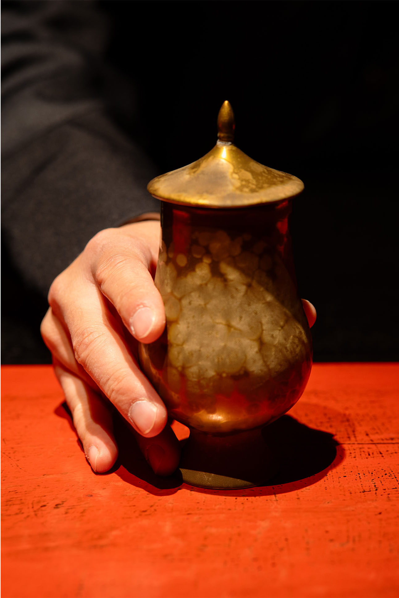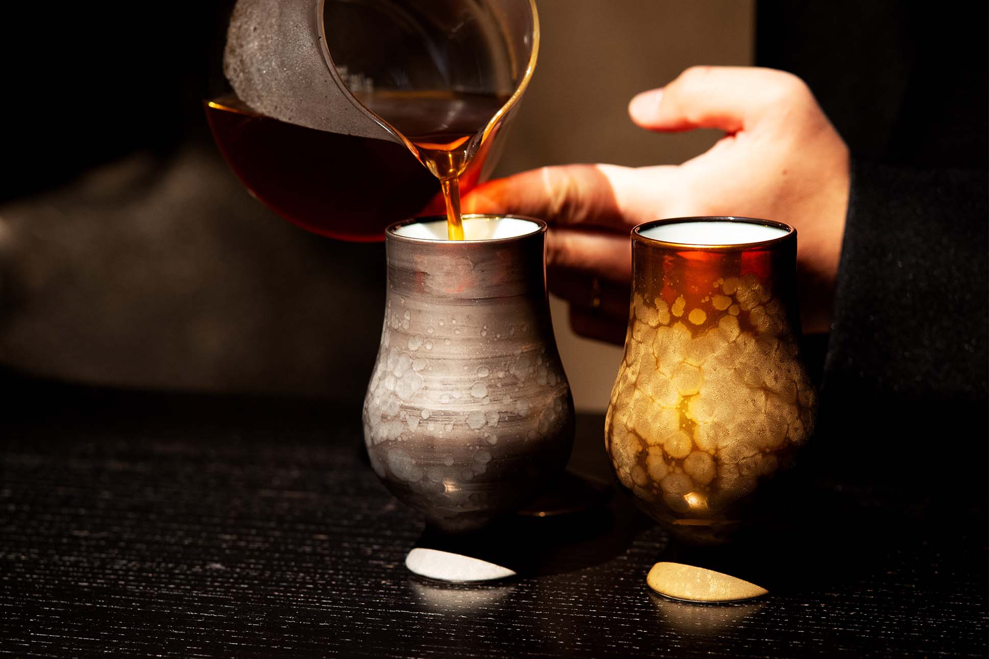 To enter Cokuun, you bow. The passage is low and narrow, like the humble doorways of traditional tea houses, and it delivers you into a dim, curved chamber modeled after a Nambu tetsubin, the cast-iron kettles of Iwate Prefecture. The aesthetic is half chashitsu (tea ceremony room), half steampunk spacecraft. Four seats face a counter. On the counter, an antique cast-iron pot exhales a wisp of steam. For the next ninety minutes, Hidenori “Hide” Izaki will guide you through some of the world’s most exquisite coffees, paired with seasonal Japanese fruits and ferments to complement the coffees’ fruity and floral aromas. You will leave knowing more about the art and science of coffee than you ever imagined.