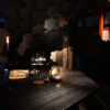 A crystal chandelier drops gracefully from the ceiling, bathing everything with its warm glow. In the sitting room hangs a painting of a geisha’s back, bare save for an irezumi tattooed across her flesh—a Hisashi Otsuka piece, I later learn.