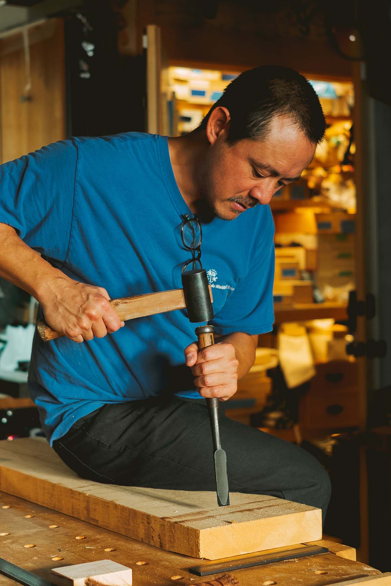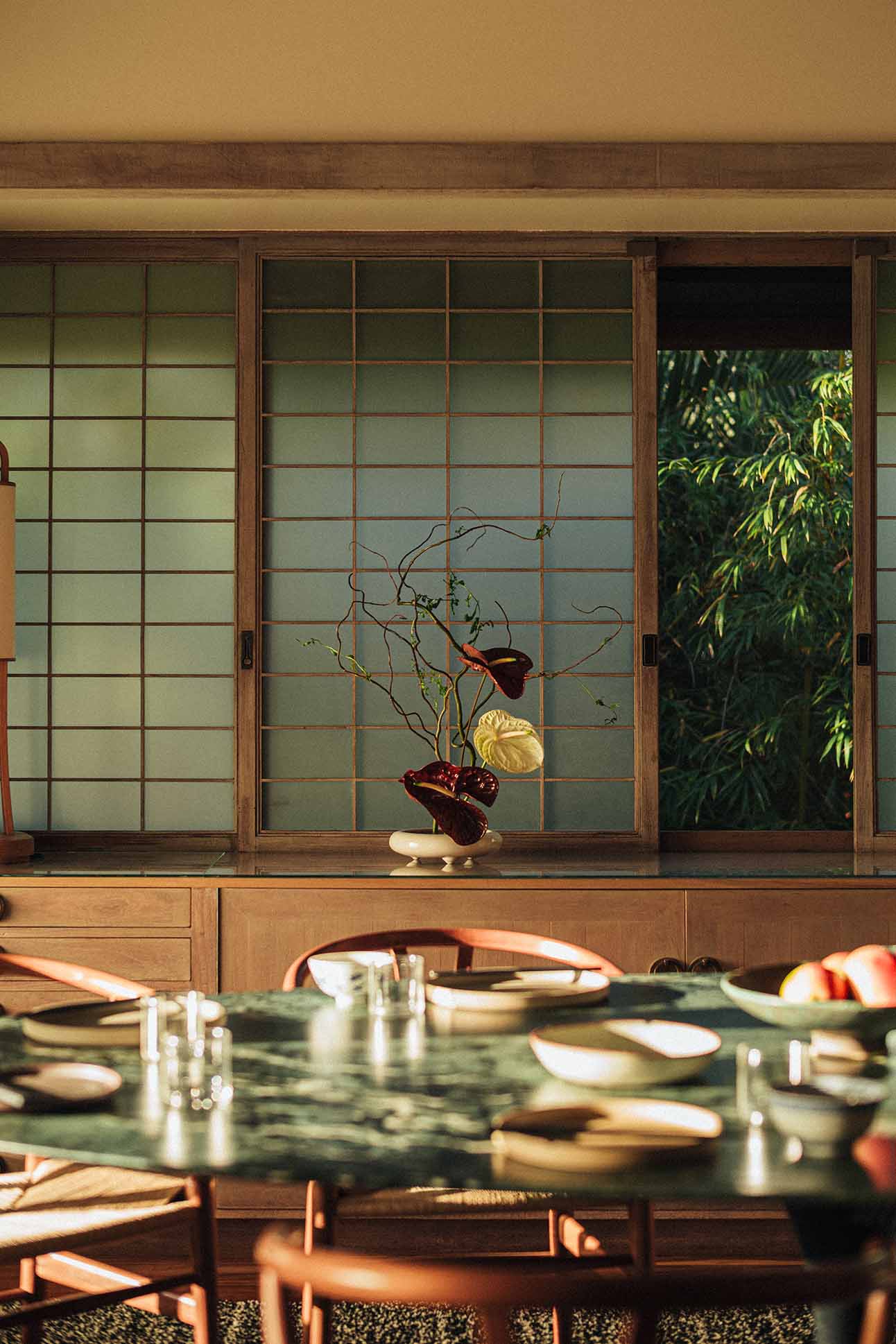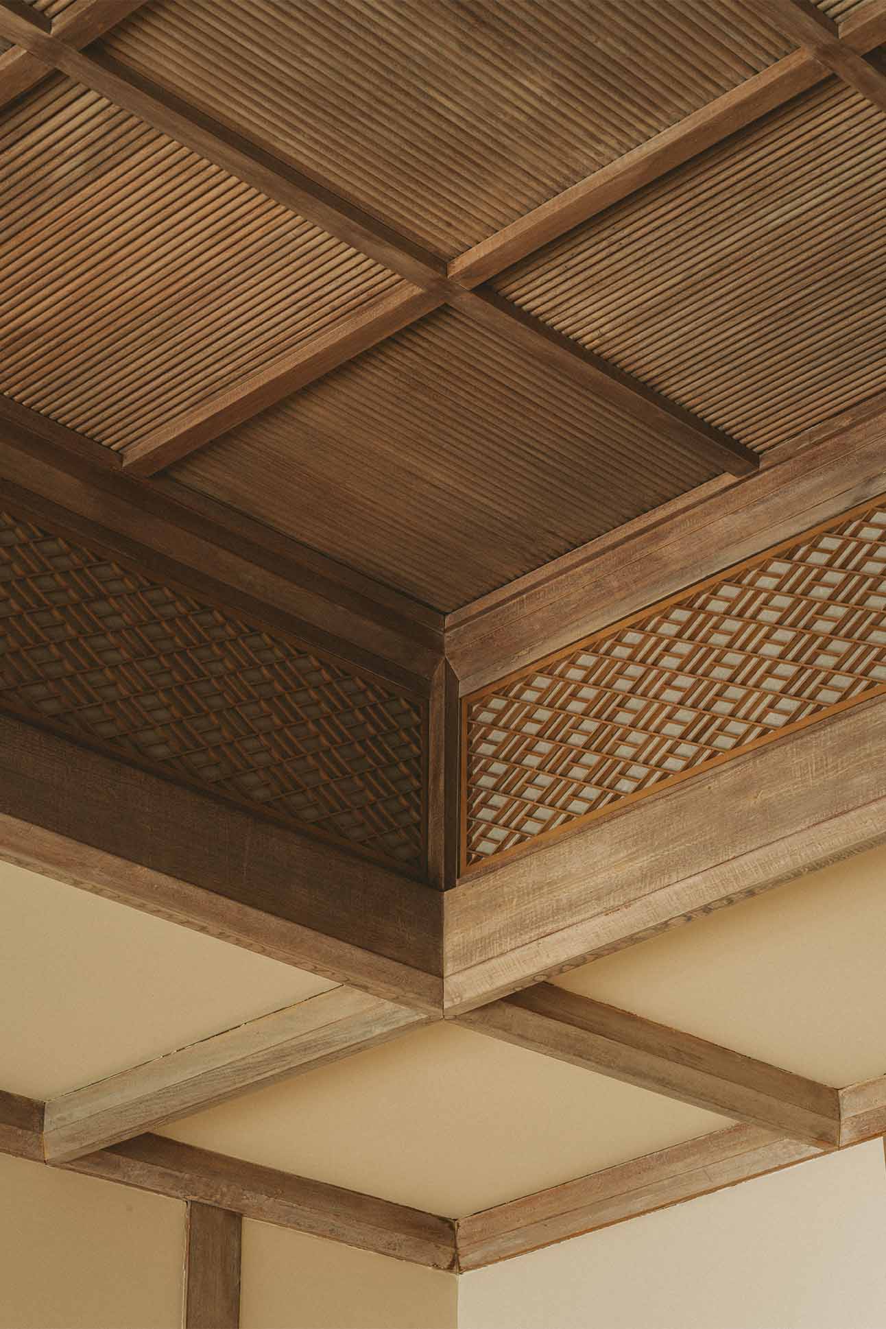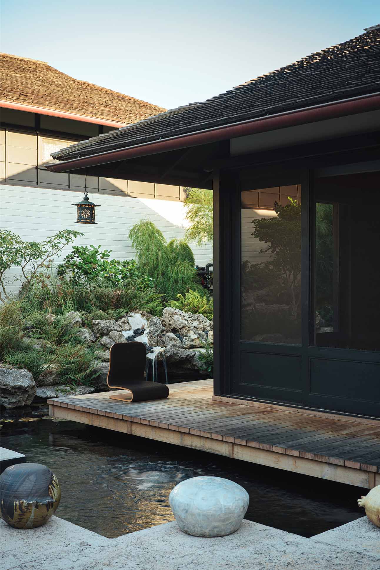 Lam’s approach to restoration was shaped by a deepening appreciation for both the structural intentions of Ives and the lineage of Japanese design that influenced Hawai‘i’s architectural language. The project also became a study in material limitations and craft traditions. “There isn’t anything too exotic in Ives’s homes—redwood, fir, a little koa,” Lam says. “But all owners of historic houses live in absolute terror of finding craftspeople sensitive enough to work on them as well as appropriate materials of high enough quality.” That anxiety—of loving a home but not knowing how to care for it—drove him to become a student of traditional methods. “I had zero woodworking experience [when I bought the house],” he says. “But I went to Japan to look at buildings with an architect who worked at a carpentry firm. Witnessing them craft the most beautiful wood joinery I had ever seen left an impression, and I finally picked up some tools two years later. By the end of the restoration project, I was able to help with some of the carpentry.”