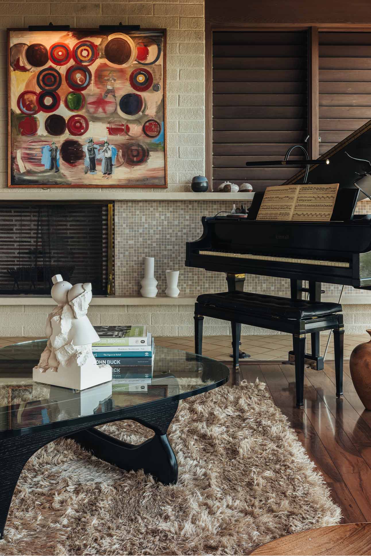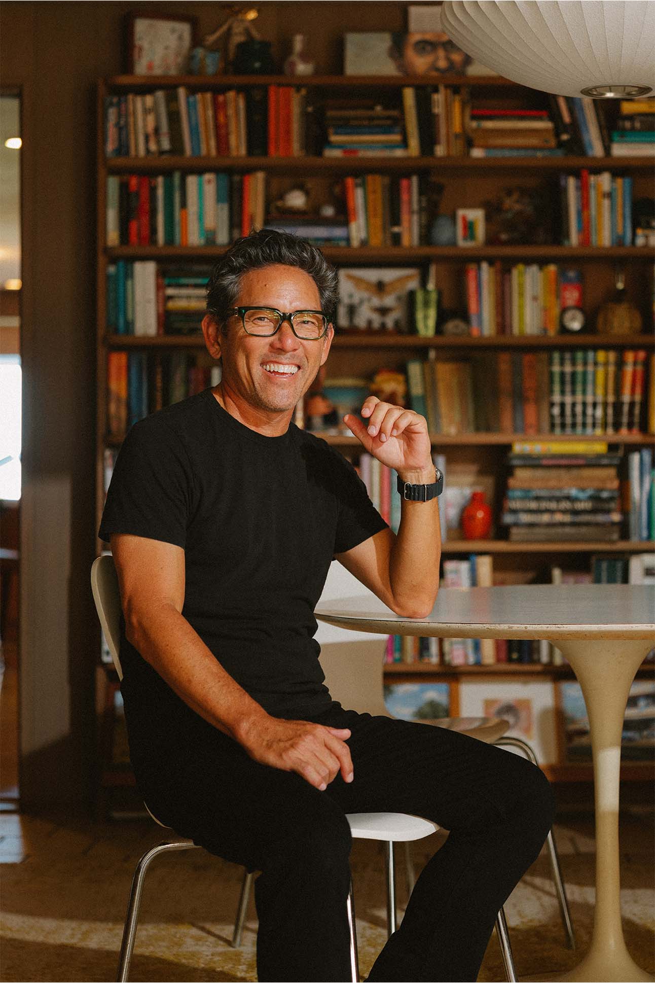 Across town, art advisor Kelly Sueda took a quieter, but no less intentional, approach to restoring his family home, which was designed in 1959 by Vladimir Ossipoff, the most celebrated architectural modernist in Hawai‘i. Sueda grew up steeped in midcentury design. His father was an architect who briefly worked with Ossipoff in the late ’60s. Inside their family home in Mānoa, Wasilly and Eames chairs and Saarinen tables were fixtures of daily life. So when Sueda and his wife stumbled across an unlisted Ossipoff property nestled behind a stand of trees, just eight houses from their own, the decision to buy was immediate. “The second I saw it, I called my wife and told her to wake up the kids from their nap and walk over,” he recalls. “Three weeks later, we owned it.”